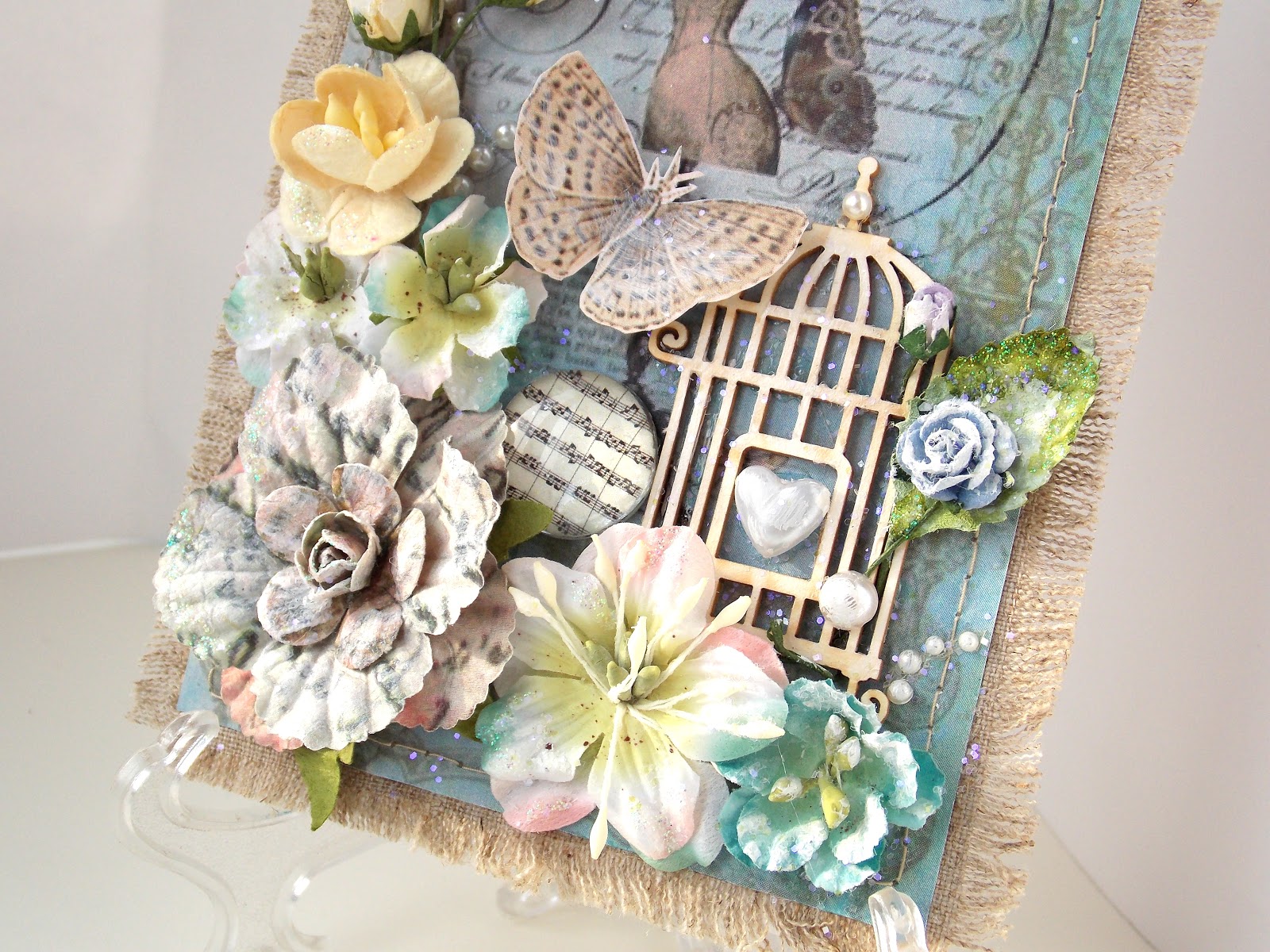 Поддержу мнение многих скрапбукеров о том, что всегда приятнее использовать материалы и украшения специально предназначенные для нашего любимого творчества. При создании этой открытки я использовала цветы и украшения от многими любимой Prima, результатом я довольна как слон, а цветы и украшалки смотрятся насыщенно, красиво и богато)) Ну что тут говорить фирмА!